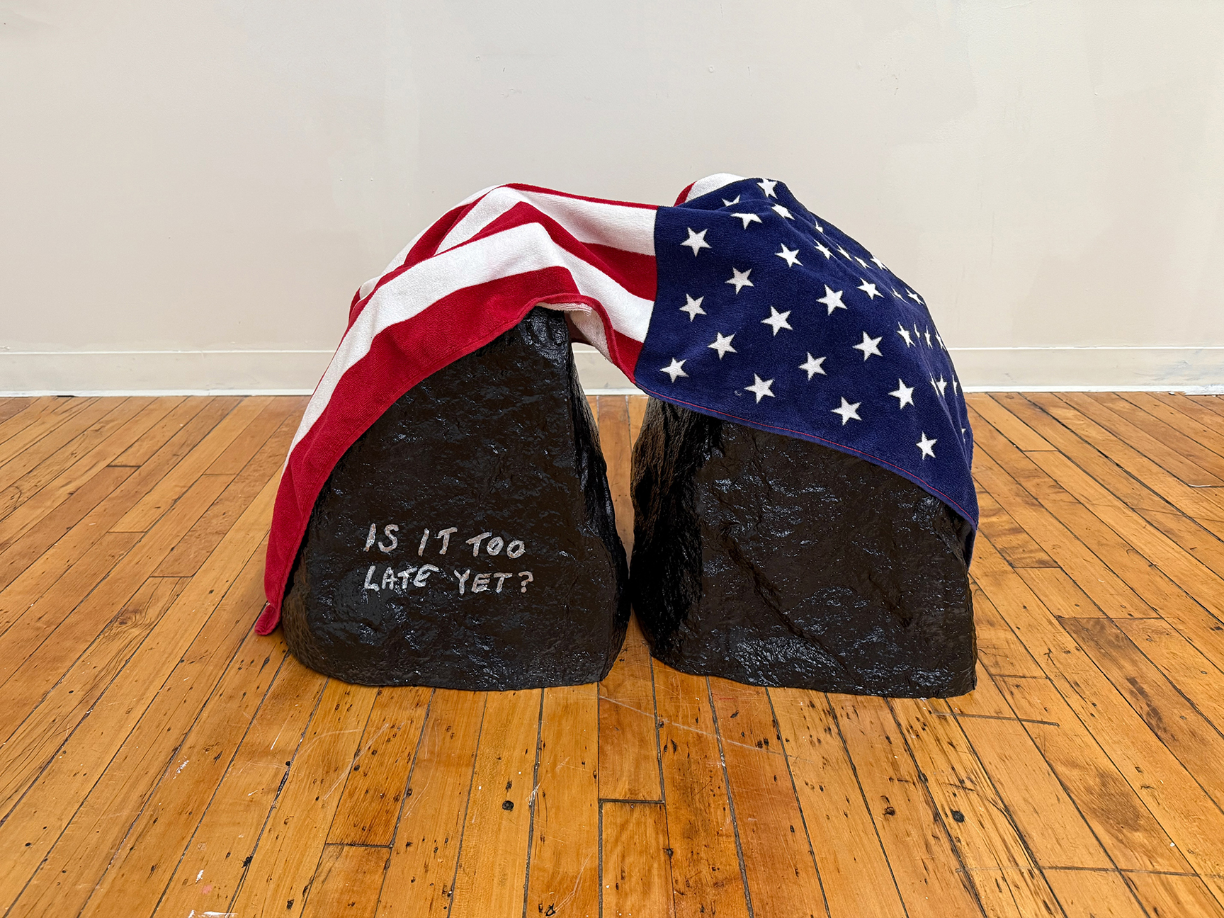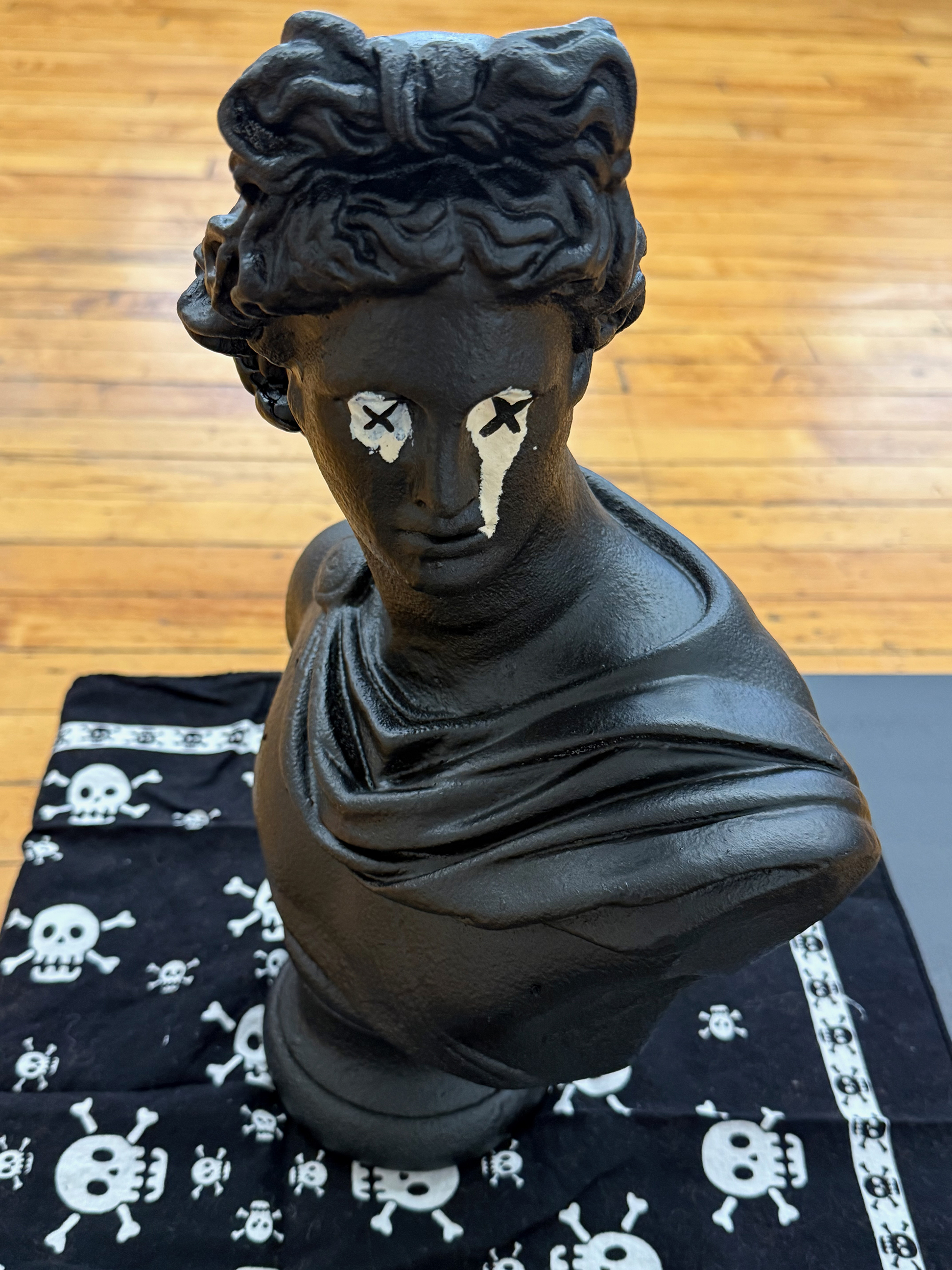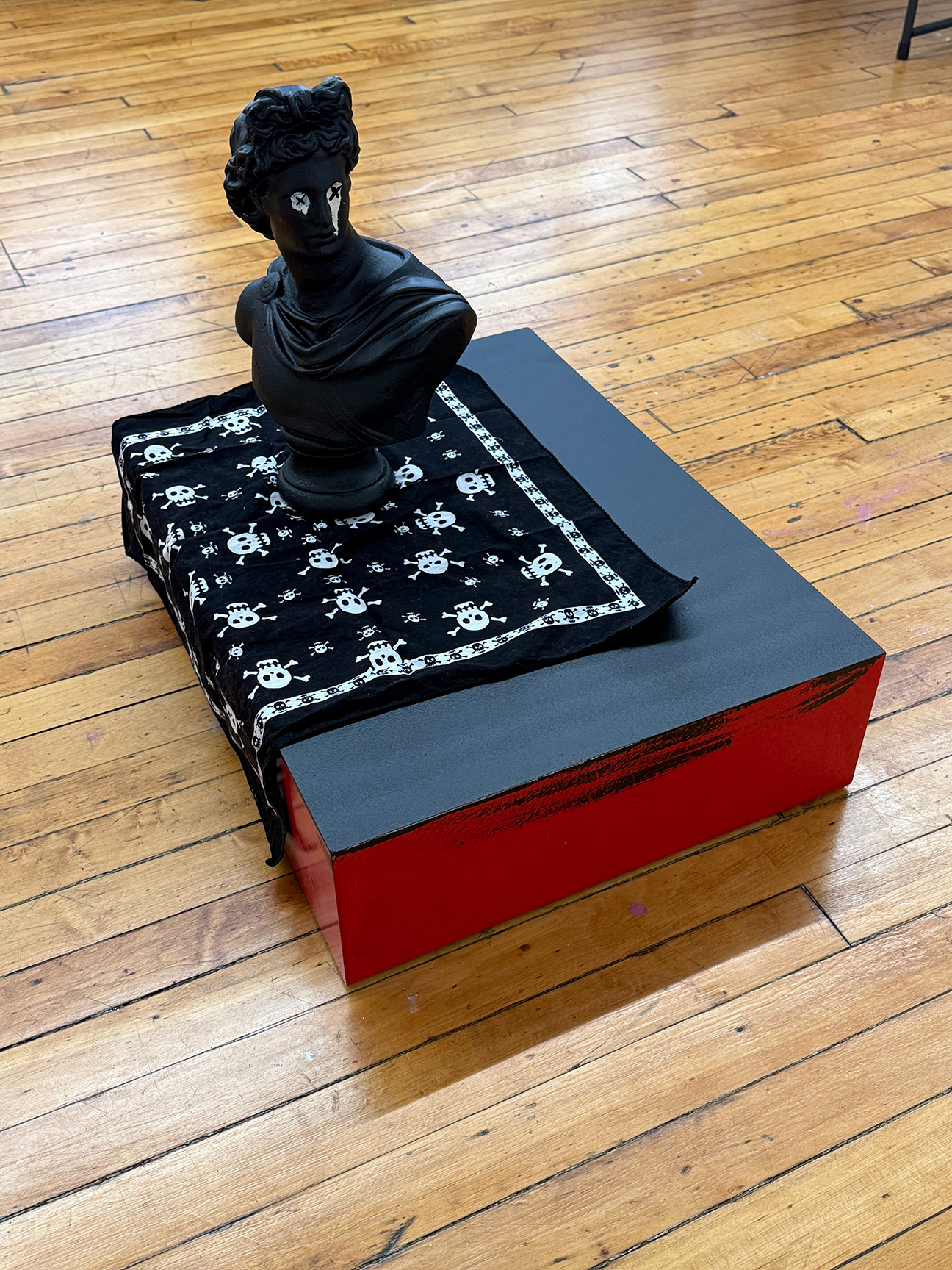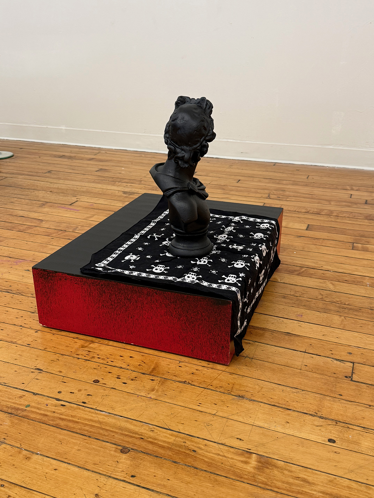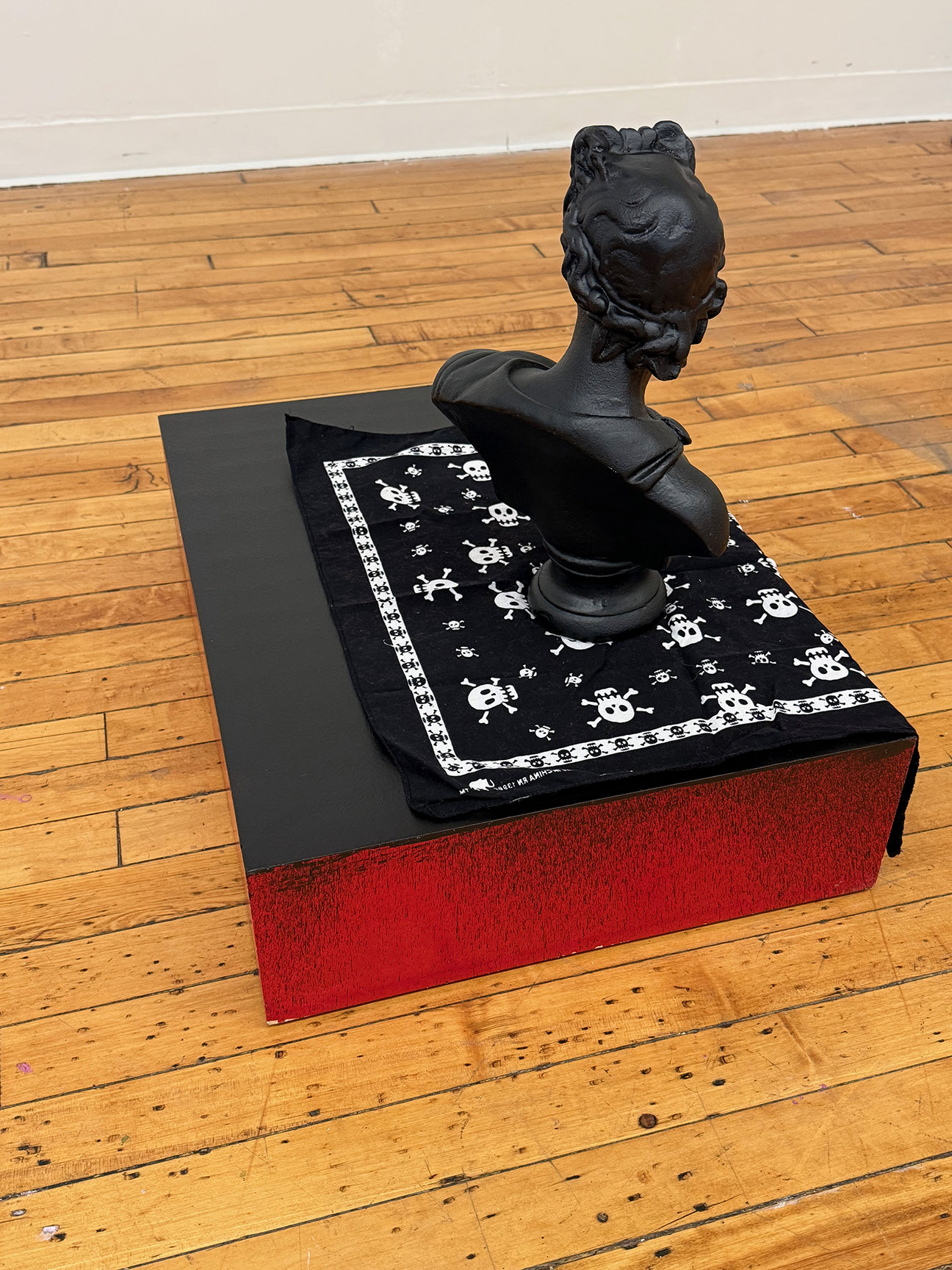 rubber sealant on cast stone and MDF plinth, cotton bandana