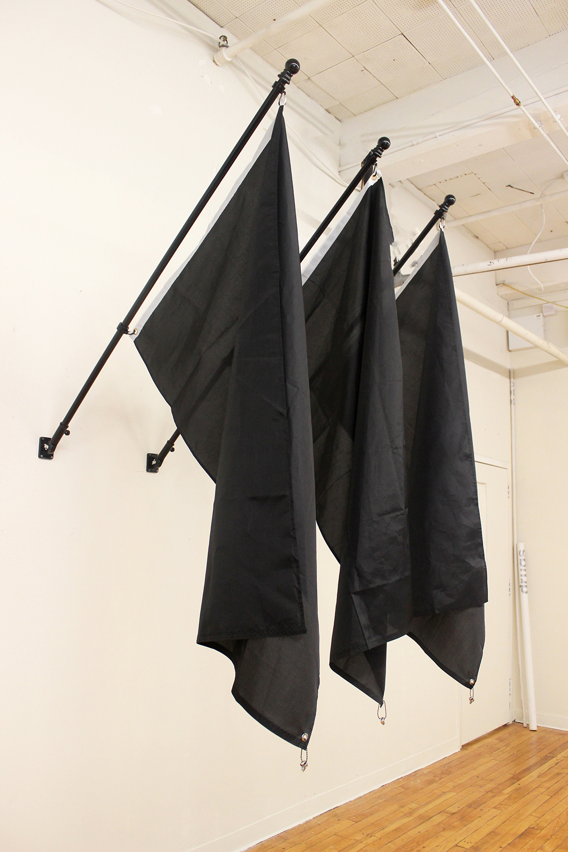 nylon flags, aluminum flag poles and mounts, bead chains, silver skull charms